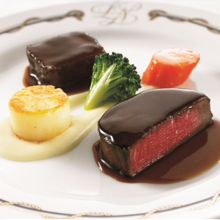 横浜、山下公園前ホテルニューグランドタワー5階。ハーバーフロントに位置するパノラミックレストラン「ル・ノルマンディ」は、大西洋の華と呼ばれた豪華客船ノルマンディ号のダイニングルームをコンセプトにレイアウトされた、ホテルニ ューグランドの象徴とも言うべきメインダイニング。ヨーロッパを代表するフランス人デザイナー、P・イヴ・ローションによる、劇空間を演出した1930年代インテリアは、窓の向こうに広がる眺望とともに、味わっていただきたいオリジナルメニューのひとつ。