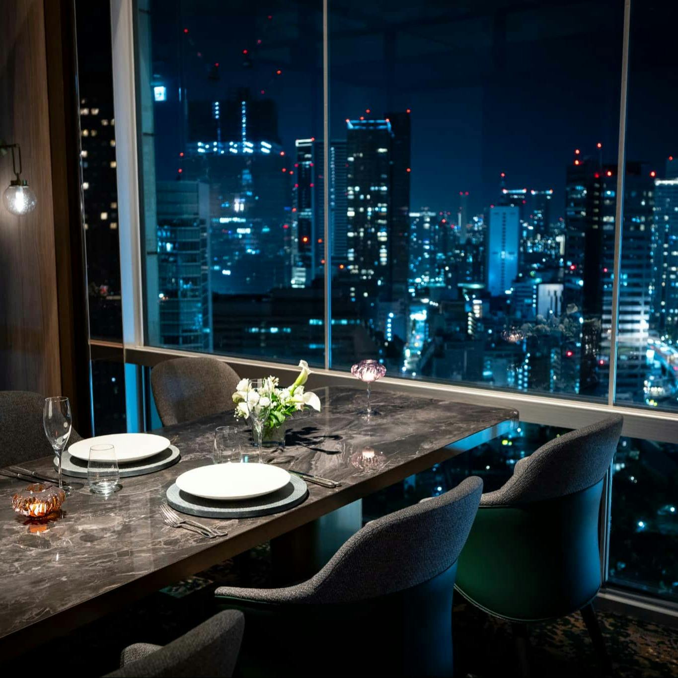 ホテル最上階に位置する全席セミプライベートルームエリア。数々の国際コンクールで入賞を経験を持つ料理長 茂手木 了による渾身のコース料理や、ソムリエ厳選の種類豊富なワインをご用意。自分たちだけの特別な空間でラグジュアリーなひとときを。