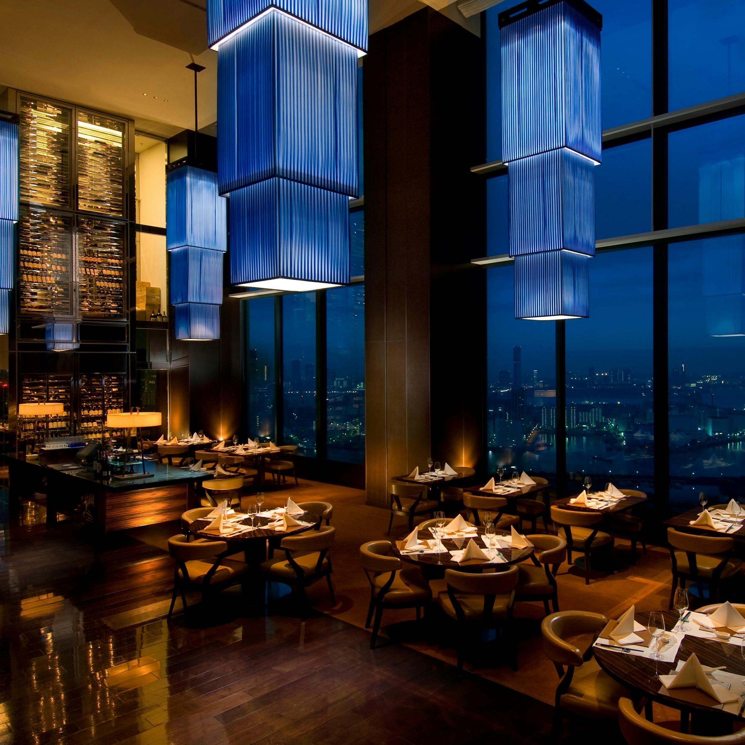 ひときわ目をひく高さ8メートルのワインセラーや、ブルーで統一されたスタイリッシュなインテリアが印象的な空間でモダンかつ洗練された味わいと斬新なプレゼンテーションが特長の広東料理をお楽しみいただけます。