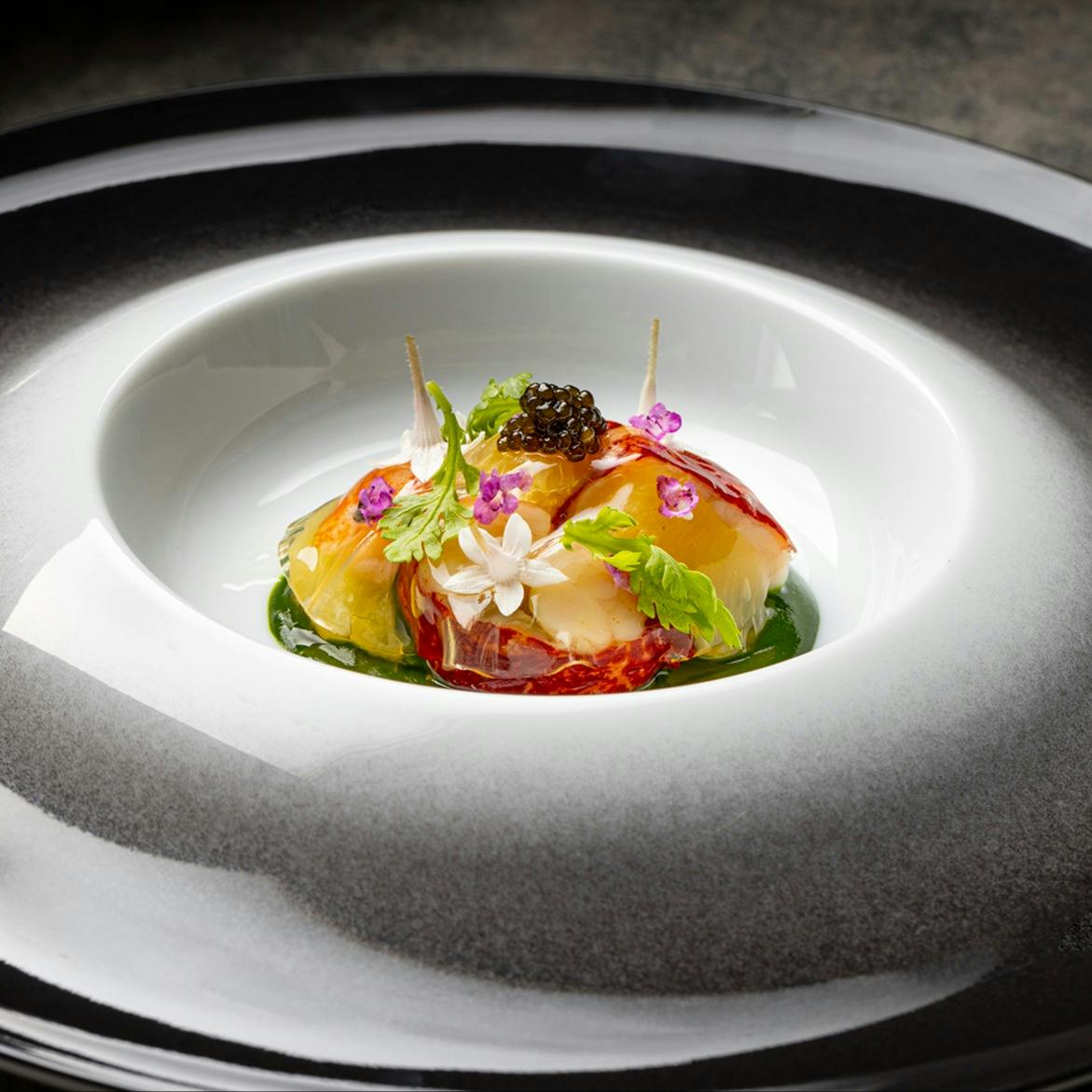 フレンチをベースに様々な国の技法を取り入れた新スタイルのモダンフレンチレストラン。高さ7mの窓から望むダイナミックな景観と、開放的なオープンキッチン、モダンな内装が繊細で洗練された、まるでアートのようなお料理と相まってエレガントさの中にもリラックスしてお楽しみいただける空間です。