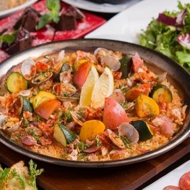 JR有楽町駅、地下鉄日比谷駅からも程近い「LoBoS 日比谷店 」。地下への階段を下り、ドアを開けると都会の喧騒から一転、非日常的な空間が広がります。特製パエリアやハーブ香るアヒージョは当店一押し!パスタやピッツァ、お手軽なタパスなどイタリアンテイストのメニューも充実した本格スパニッシュ×イタリアンをお愉しみいただけます。また、ワインセラーにて品質管理されたワインは、スペインを中心にバリエーションに富んだ世界各国のものを取り揃えております。更に、当店のサングリアは全て自家製!ワインがお苦手な方にも飲みやすく仕上げておりますので、美味しいお料理とともに素敵なひと時をお過ごしください。