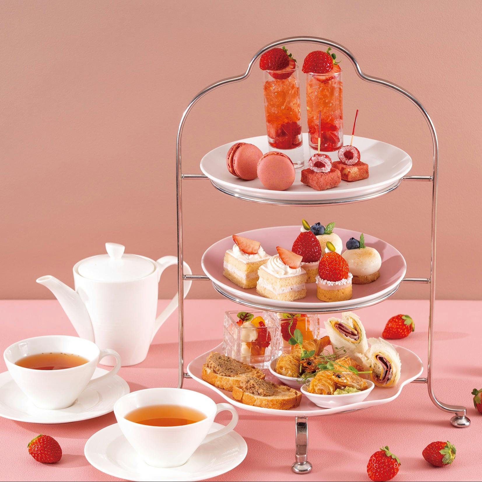 スカイラウンジ“オーロラ”。ティータイムからバータイムへ…。青空から夕陽、星の瞬く夜景へと移りゆく眺望とともに、デザートやカクテルをどうぞお楽しみくださいませ。