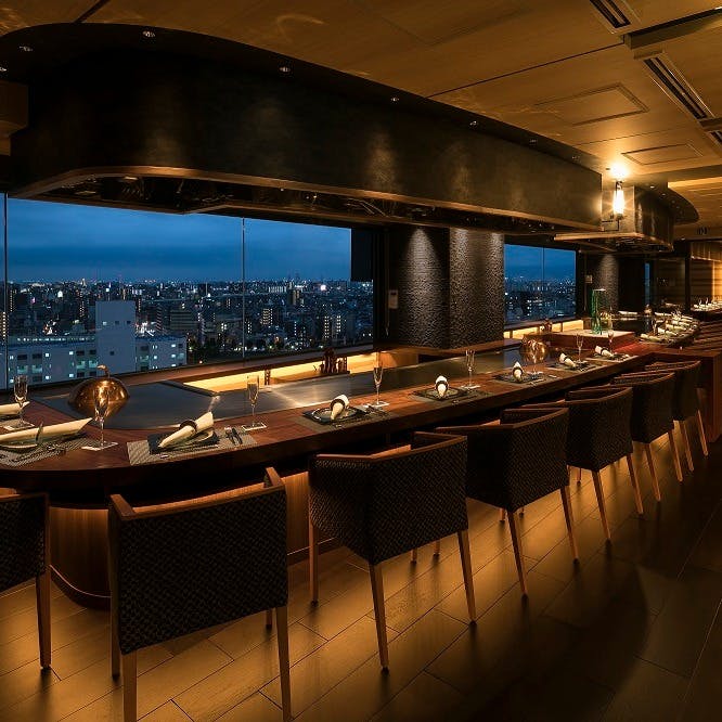 ホテルプラザオーサカ最上階のラグジュアリーフロアー「エタージュアンシェル」。その一角を担う鉄板焼「逢坂」は厳選したブランド牛に徹底的にこだわるホテルメインダイニングです。常にA4~A5クラスの良質な黒毛和牛を提供しながらも驚くほどのコストパフォーマンスでご満足いただけるのも人気の理由のひとつ。全席から臨める大阪平野の夜景が至福の時間を演出します。