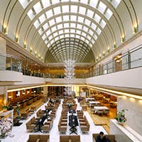 吹き抜けから光降りそそぐ、優雅なラウンジで快適な時間を