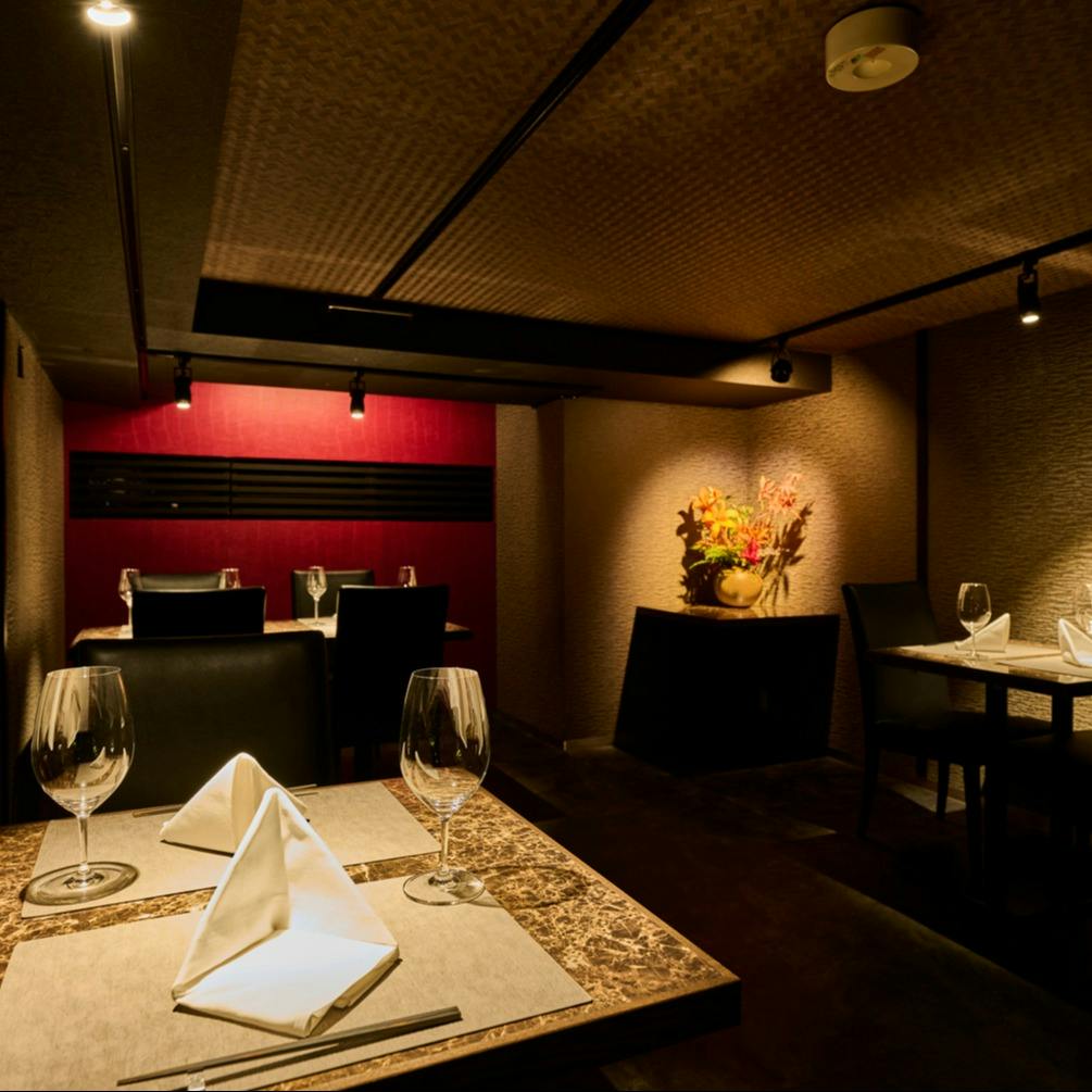 「大人の隠れ家」に相応しい佇まいで、皆様をお待ちしております。ムーディーなテーブル席フロアや、2名様からご利用頂ける個室など、全ての席で接待、会食、記念日とシーンを選ばないお店の雰囲気となっております。 お洒落で高級感溢れる港街「横浜」で至福の時間をお過ごしください。
