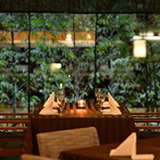 ホテルダイニングというフォーマルな雰囲気の中に、お客さまの目の前で調理をするライブキッチンを取り入れ、バラエティ豊かなお料理を提供します。中庭を眺めながらゆったりとお食事をお楽しみください。