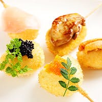 旬の素材を生かした創作串揚げ専門店「串揚げ しんば」。子持ち昆布と生うに、エリンギ生ハムなど、厳選された食材をオリジナルブレンド油でカリっと揚げています。衣、ソース全てを自家製にこだわった、見た目も美しい揚げたての串揚げをご堪能くださいませ。また、月替わりのお口直し等も、趣向を凝らしてご用意しておます。気心の知れたご友人とのお食事や大切な方の記念日、接待など幅広いシーンでご利用いただけます。