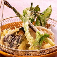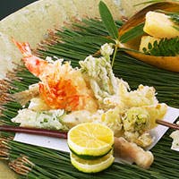 四季折々の新鮮な旬の素材の美しさを板前が丹精込めて目の前で揚げる天ぷらを中心に、多彩な和の肴を取り揃えております。落ち着いた雰囲気のカウンター席で、山海の旬の味覚をお楽しみください。