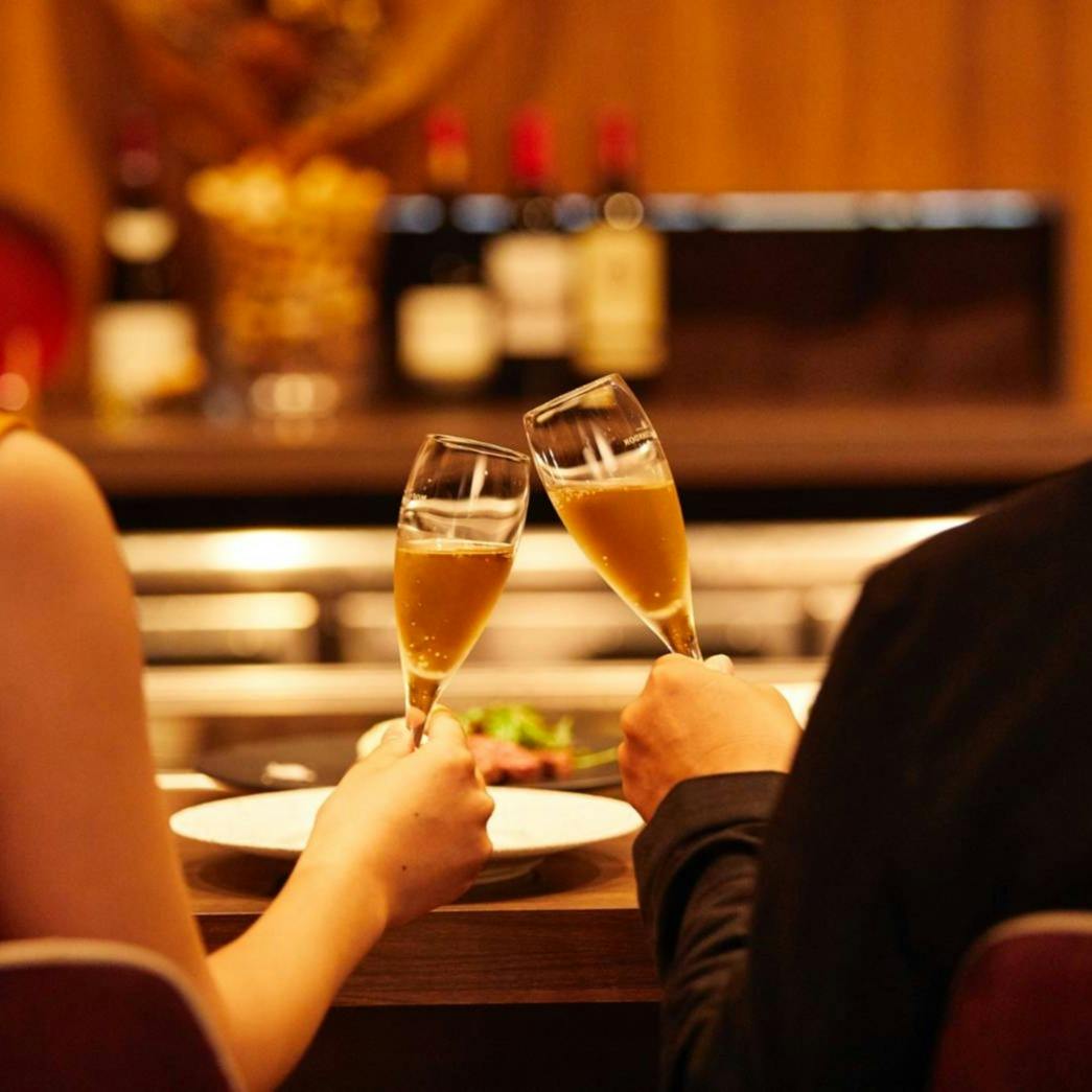 三宮駅より徒歩3分、知る人ぞ知る大人の隠れ家 鉄板焼×フレンチ「TEPPAN KAWASAKI」。日本中から厳選した食材の美味しさを最大限に引き出し、味付けのこだわりに加え、繊細でお洒落な盛り付けが目を引きます。臨場感溢れる調理風景を目の前で楽しめるカウンター席、お集まりにも人気のテーブル席をご用意しておりますので、記念日や接待、友人とのお食事会など、様々なシーンでご利用いただけます。
