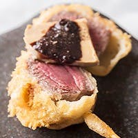 サクッと軽く上品な食感が特徴の「フランスの天ぷら:ベニエ」を串揚げにし、コーススタイルで愉しむ日本初業態【フレンチ串揚げ BEIGNET】。旬の食材や新鮮な魚介、フレンチならではの食材を使用し、当店だけの串揚げをフレンチ流にご提供いたします。店内にはシェフとの会話と共に臨場感を味わえるカウンター席や、ゆったりと贅沢な個室などご用意。目の前で一品一品丁寧に揚げるフレンチ串揚げと共に特別なひと時をお過ごしください。