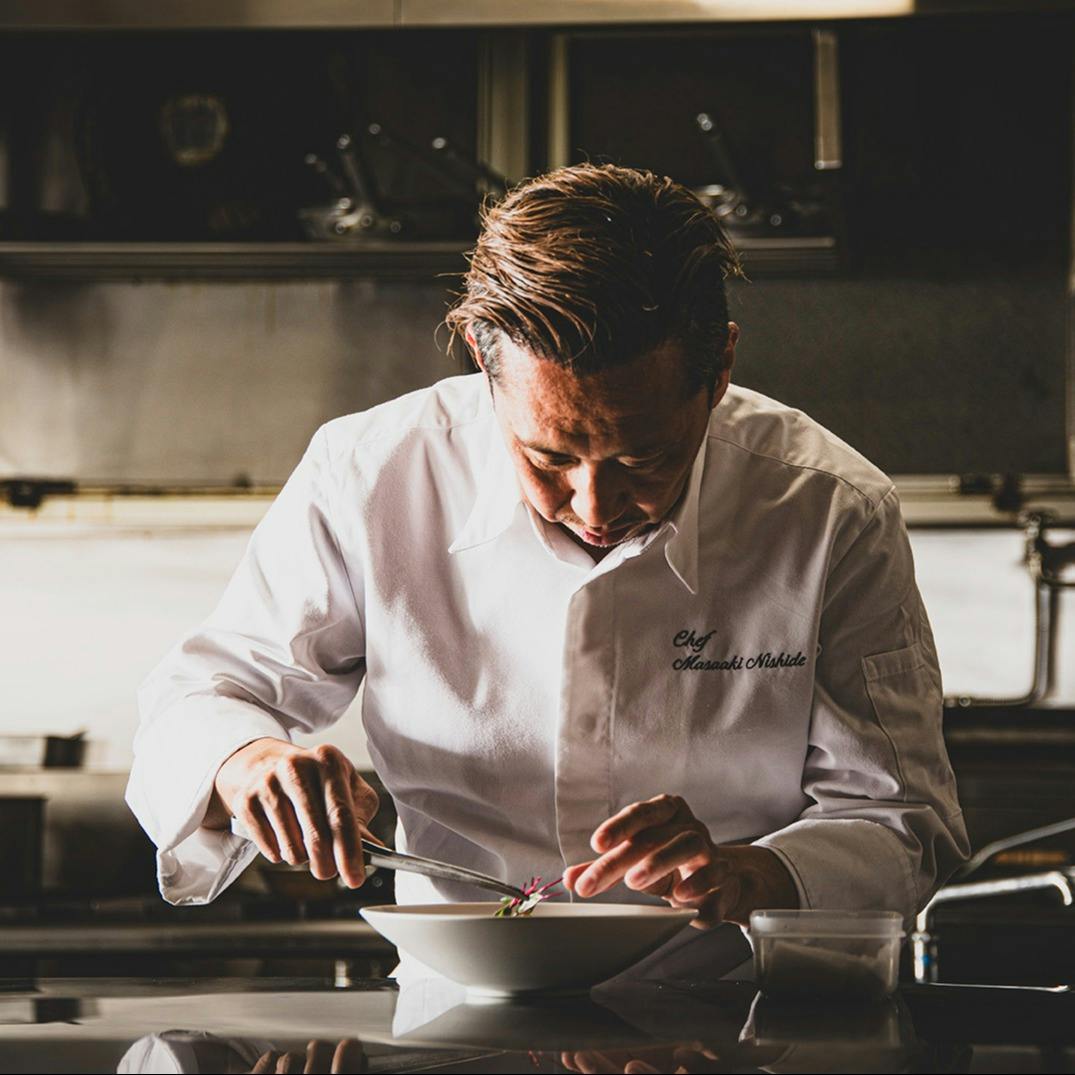 大阪の魅力を最大限に活かすため、大阪近海で獲れる新鮮な魚介類、古くから大阪の地に伝わるなにわ伝統野菜をはじめとする豊かな自然が育む野菜、そのほか関西地方特有の食材をふんだんに使用し、こだわりの黒毛和牛 能登牛をご用意しております。これら地元の食 材を活かしたお料理は、大阪の四季を感じさせる色鮮やかな味わいが特徴です。 伝統的なイタリア料理と大阪らしいアクセントを加えた、どこにもないユニークなお料理をご堪能ください。