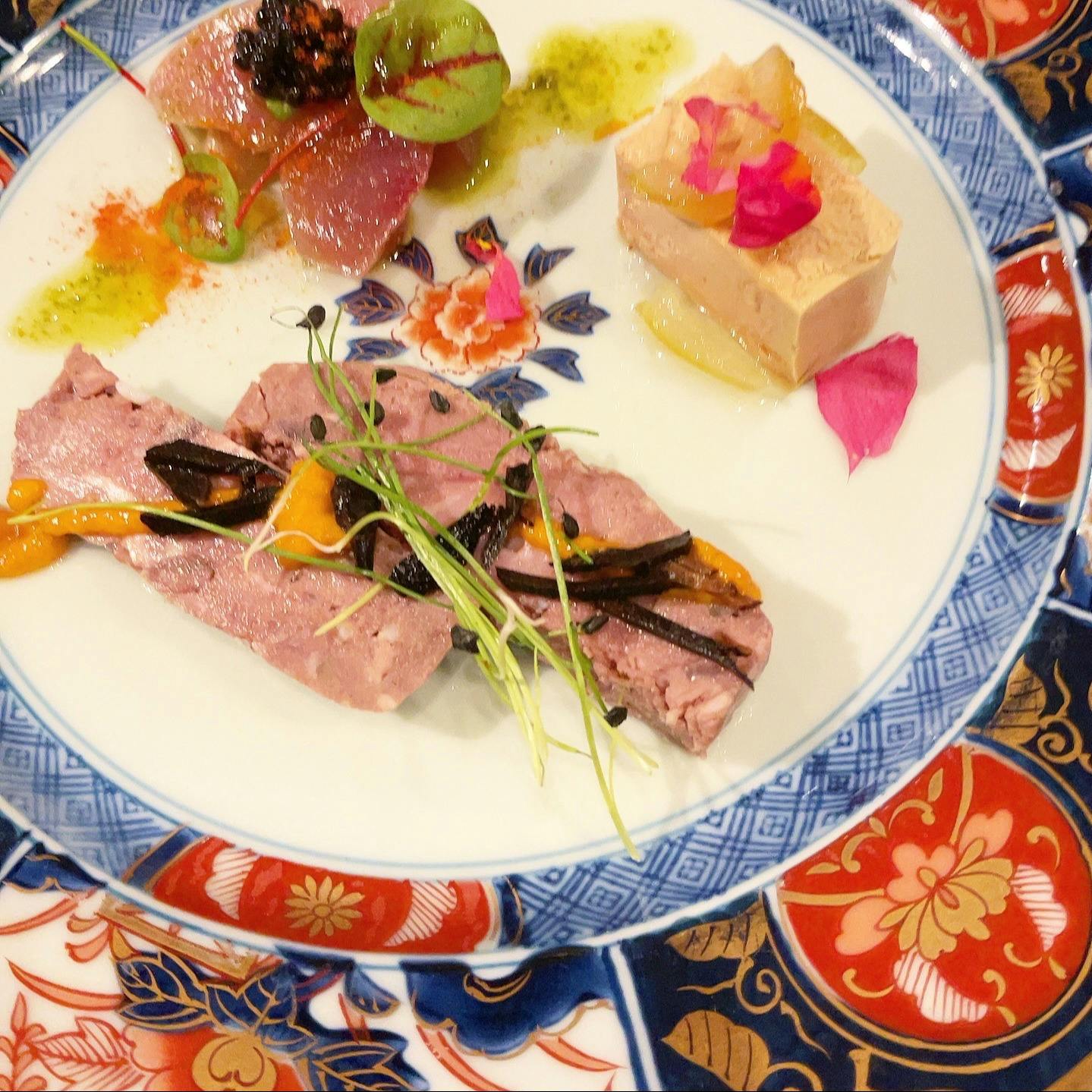 「厳選食材と和食器が奏でる格別なひととき」旬の鮮度と濃厚な旨味をまとった厳選食材と繊細なアンティーク和食器にのせて、フランス料理の技と和の美意識が織りなす新感覚の「和モダンフレンチ」をご堪能ください。