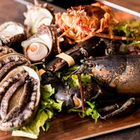 鉄板焼きをカジュアルにかつリーズナブルに。毎日仕入れる鮮度抜群の海鮮と店主目利きの熟成和牛を炭火、鉄板焼で調理。「高級なイメージのある鉄板焼きをもっと身近に感じてもらいたい」そんなお店を作りました。大事な方との記念日や誕生日、女子会などカジュアルにただ思い出に残るお食事をどうぞ。カウンター席では目の前で調理される大きなオマールエビやアワビ、サザエなどなど見てうれしい聞いて楽しい食べておいしいそんなお店です。