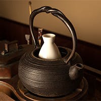 古い硝子の戸を開けると、柿渋の落ち着いた色合いの店内に、長火鉢を中央に設えた5名掛けのカウンターと4人掛けのテーブルがひとつ。店名の由来となった寄り添う2本の柿の木のように仲睦まじい店主と女将に迎えられ、思わず「ただいま」と言いたくなる穏やかな空間です。