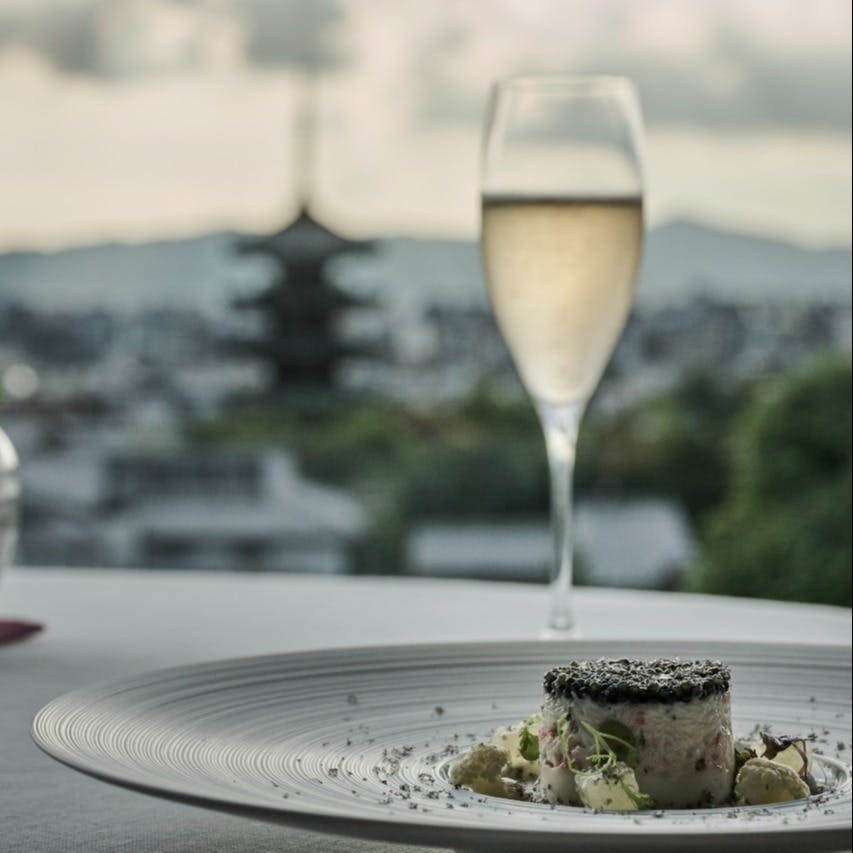 八坂の塔を望む美しい景色とともに味わう正統なるフランス料理