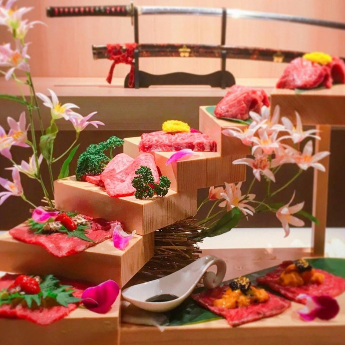 “胃もたれしない美味しい焼肉”をテーマに誕生した、割烹も楽しめる新時代焼肉でございます。5つ星ホテルの和食職人、肉業界10年の職人、焼肉を知り尽くしたプロ3人が手を組み、超越した『焼肉割烹』という新ジャンルを創出しました。「階段盛り」や「和牛うに包み」など上質肉を使用しているため、塩と余分な脂を洗い流す「洗いダレ」のみ使用しております。斬新で洗練された新焼肉【YP流】をご堪能下さい。