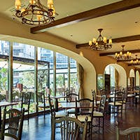 本場イタリアの素材、調理法にこだわったレストラン。自家製生地のピッツァ・800gのフィレンツェ風Tボーンステーキ、旬の食材を使った日替わり料理等。 味とボリューム、ソムリエ厳選のイタリアワインでお客様をおもてなし致します。天気の良い日はガーデンテラス(48席)でのお食事がおすすめです。