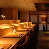 素材をいかに美味しく、旨みを引き出すかを考えています。長さ7.5mもの直線的なカウンターを活かした店内は、装飾を極限まで控えた空間。和の様式美とモダンとが調和をとり、共存しています。客席はスペースを広く取り、ゆったりとした椅子をご用意。職人の活気、本格江戸前寿司を味わいたい西麻布の大人の為の空間になっています。
