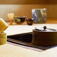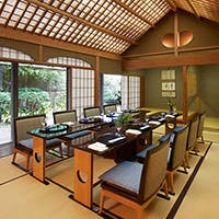 旬の食材を生かした懐石料理を竹あじろの光天井などの意匠が生み出す落ち着いた空間でお楽しみいただけます。