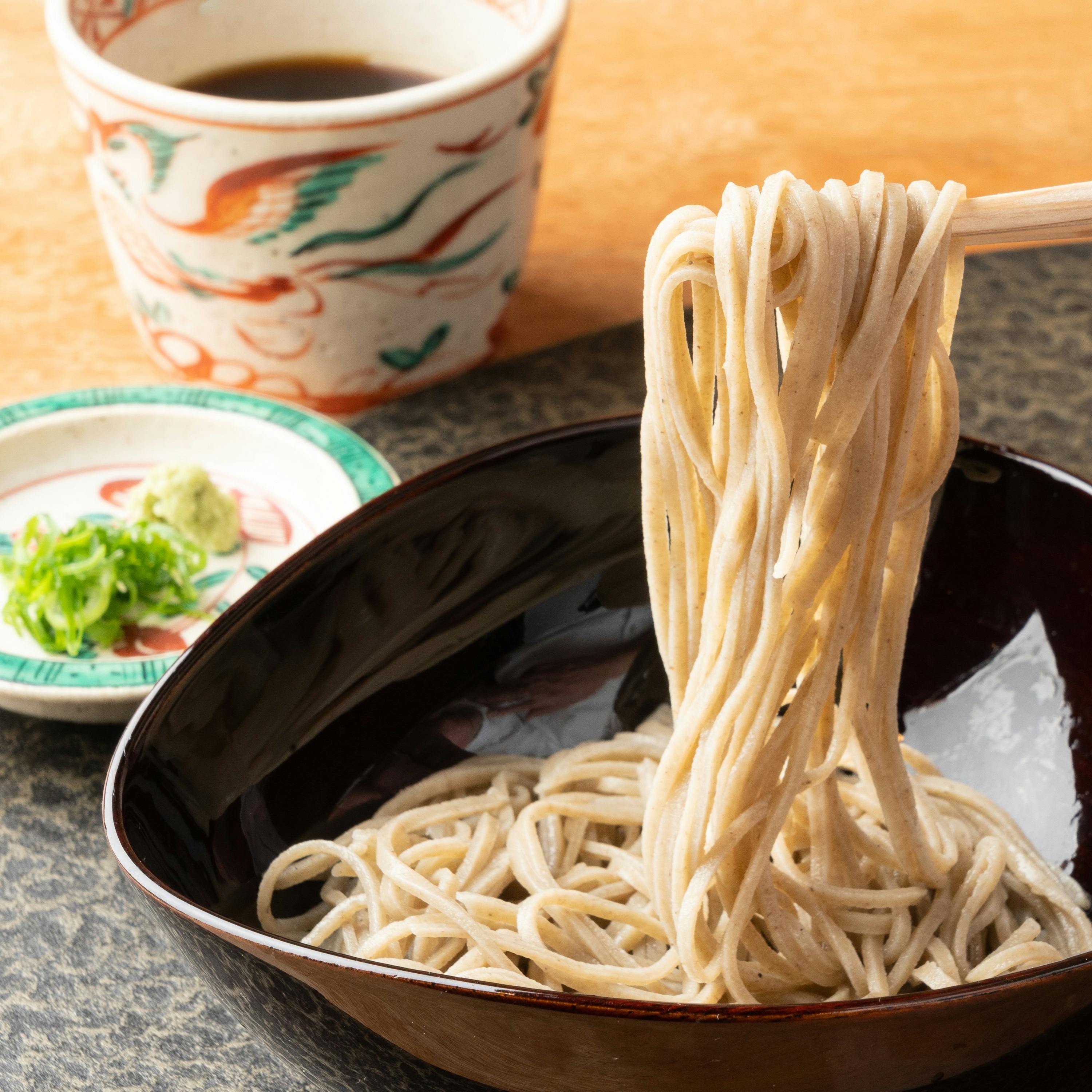めくり福井県大野勝山産の蕎麦粉にこだわり、店主自ら打ちます。食感・香り・喉越しが自慢です。 季節に応じ、新潟産コシヒカリを使用した土鍋御飯も御好評頂いております。