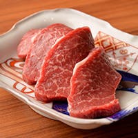 当店では、数々の有名な牛料理店や焼肉店に神戸牛を輩出している川岸牧場より仕入れた神戸ビーフを使用。清流加古川と山々に囲まれた抜群の環境にある川岸牧場。清らかな水と山あいの澄みきった空気のもと、但馬 牛純血種の牝牛飼育し、肉の柔らかさ・脂の旨味・見た目の美しさ・本物の“味”を追求しています。名古屋では希少な川岸牧場の神戸ビーフを、上質な脂の甘味と最高級和牛の香りを楽しめる「リブロースの一枚焼」や「赤身の厚切り焼」などで、ぜひご堪能ください。