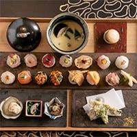 京都・烏丸御池からほど近くに佇む、手鞠鮨と日本茶が楽しめるお店“宗田”。季節ごとに厳選された食材を、その魅力が存分に活かされた五感で楽しむ一品へと仕上げます。月替わりで供される風味豊かなお茶で愉しむお喋りは癒しのひととき。店構え、内装、器、素材、料理、細部に店主のこだわりが光る特別な空間で、特別なひとときをお楽しみください。