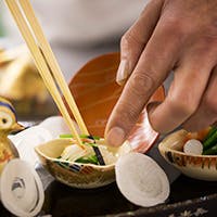 名士や文豪などに愛されてきた老舗料亭の伝統は、美食とおもてなしにも。提供されるのはその年その季節に最もおいしい食材を厳選し、持ち味を余すことなく引き出した料理。五感で楽しめるように細やかなしつらえや漂う香りにまで心を配ります。