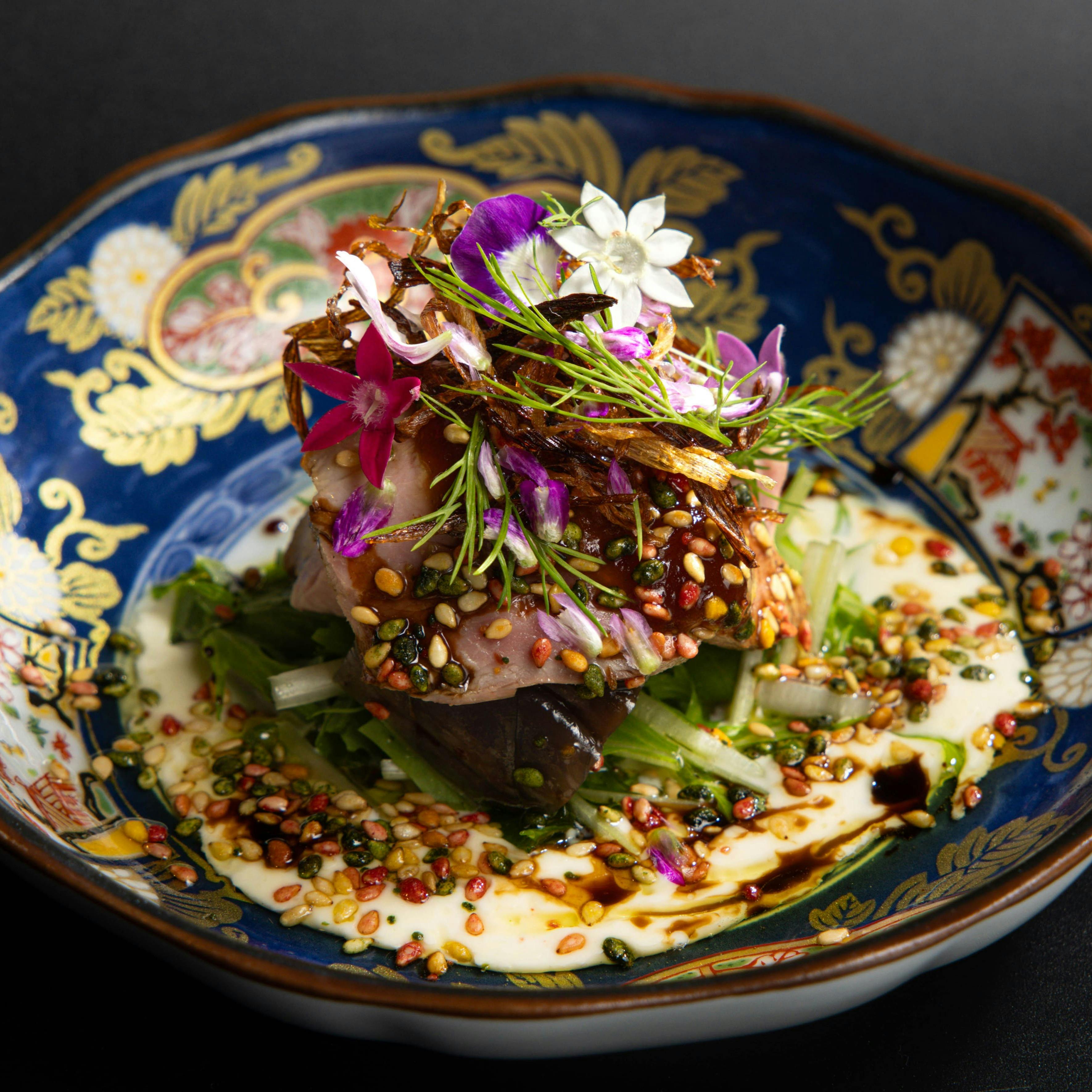 厳選した神戸肉や黒毛和牛、黒豚や鴨で構成した肉割烹イノベーティブスタイル。肉鮨やすき焼き リゾット、和と洋の要素を取り入れた新ジャンル。”龍”に導かれし幸ある時を。