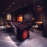 銀座並木通りの日本料理店【六雁(むつかり)】。カウンター席とテーブル席にとりかこまれるように配された広い厨房を奥まで見通せる、臨場感あふれる空間です。京料理を進化させた新・和食をご提供いたします。
