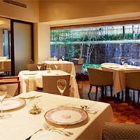 ガラス越しに水の流れ落ちる様を眺めながら、センス溢れる極上フレンチを存分にお愉しみいただけます。大切な記念日やご接待、会食など様々なシーンでご利用いただけます。
