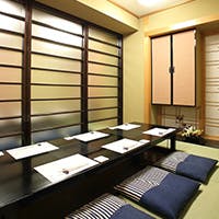 4名様用と6名様用のお座敷個室をご用意しております。仕切りを外すと最大12名様までご利用いただけます。またお部屋は掘りごたつテーブルの落ち着いた完全個室となっておりますので、くつろいでお食事していただけます。各種ご宴会やお顔合わせなどにも最適です。