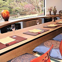 ■中目黒駅から徒歩でお越しになると急坂階段がございます。恵比寿駅のご利用をお勧めしております。 ■鉄板焼 車椅子・ベビーカーのご利用について ご案内の際、 階段や庭園の石畳を通っての利用となるため対応不可となります。 クロークにて車椅子やベビーカーをお預かりは可能でございます。