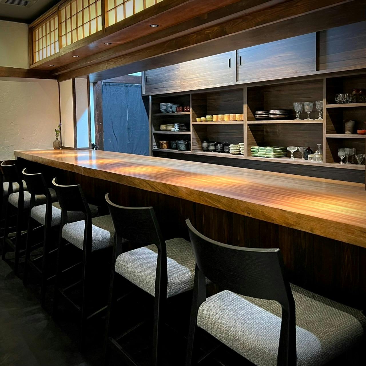 今里駅徒歩3分、大通りから路地を一本入った風情のある佇まいの【酒肴 大阪まんぷく堂】。店主自ら仕入れる食材を使用した季節のおまかせコースをご堪能いただけます。豊富に取り揃えられた日本酒と共にお愉しみください。