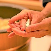 天神筋橋商店街の一角に佇む、上質な雰囲気のお寿司屋「鮨 天使」。シンプルで高級感溢れる店内には樹齢三百年の一枚板を使用したカウンター席をご用意。日常を忘れられる贅沢な空間が広がっております。店主がこだわり抜いた食器・酒器と共に提供する寿司は、どれも一貫一貫丁寧に握る至極の逸品です。接待などの大切なビジネスシーンやご家族でのお食事など、様々なシーンでご利用くださいませ。