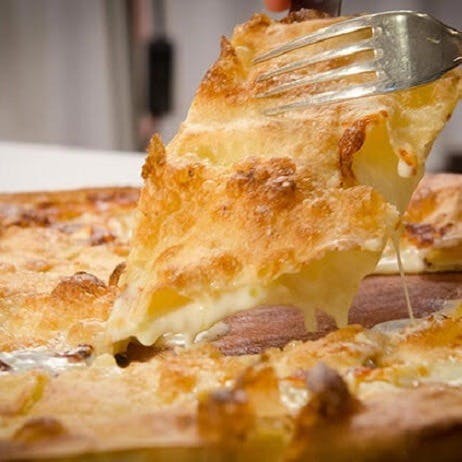 一流シェフがもてなす豪快な皿の数々をお楽しみいただけます。「フォカッチャ デ レッコ」は、イタリアの地中海に面したリグーリア州に位置する、レッコ村 の伝統料理。イタリアの小麦粉、リグーリア産のエキストラバージンオリーブオイルと水のみで作った生地にレッコ産のクリーミーなストラッキーノチーズをはさんだごく薄いフォカッチャです。ここでしか味わえないお食事をご堪能下さい。