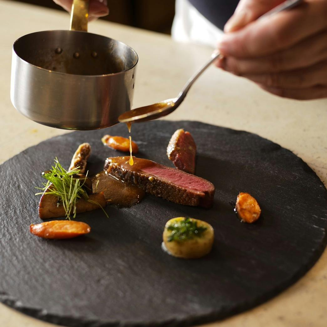名古屋駅からのアクセスも便利な桜通沿いに位置する当店で提供するフレンチには、一品一品シェフの料理への思いが凝縮されています。料理はアートとして捉え、料理の枠を超える美しい料理を驚きと感動と共にお届けいたします。繊細で色鮮やかなフレンチはテーブルを華やかに彩ります。また、料理を引きたたせる食器にもこだわっており、器や銀器類等にも心を配ります。上質で華やかな空間で至極のフレンチを心ゆくまでご堪能してみてはいかがでしょうか。笑顔あふれるひとときをお約束いたします。