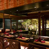 当店は、国の登録文化財に指定されている旧奥村邸を改装した、伝統と格式あるレストランである「フレンチ 奥村邸 」の敷地内に位置する鉄板焼きのお店です。店内は、日本庭園を眺めながらお食事をご堪能いただける素敵な空間になっております。厳選されたステーキや贅沢な海の幸を楽しみながら、ソムリエが厳選したワインやシャンパンとのマリアージュもご堪能くださいませ。上質なひとときをお約束いたします。