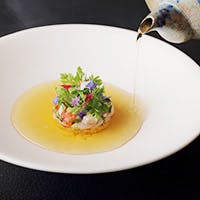 素材の本質を見極めた美しい料理と、想像を超える斬新なコース構成。そこにマッチするペアリングドリンク。私達は、膨大なインプットを元に料理と向き合い、日々アプローチを変えていく。昨日の最高を壊し、今日の「もっと美味しい」を創っていきます。
