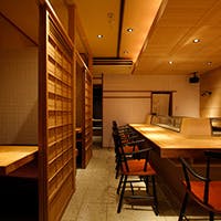 清潔感のあるゆったりとした店内に入ると、ガラスケースにはたくさんの貝を取り揃えております。カウンターと個室を設けておりますので、様々な場面でお使いいただけます。