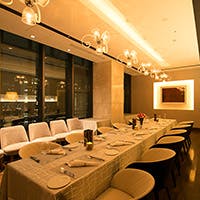 当店は地上125m、21階の特別感に満ちた空間で日常を忘れるひとときをお過ごしいただけます。店内は天井が高くとられているため開放感あふれる雰囲気になっており、窓一面に広がる梅田の夜景はいつもとは違う贅沢感を演出いたします。ロマンチックな気 分へと誘う空間で非日常のひとときをお過ごしくださいませ。