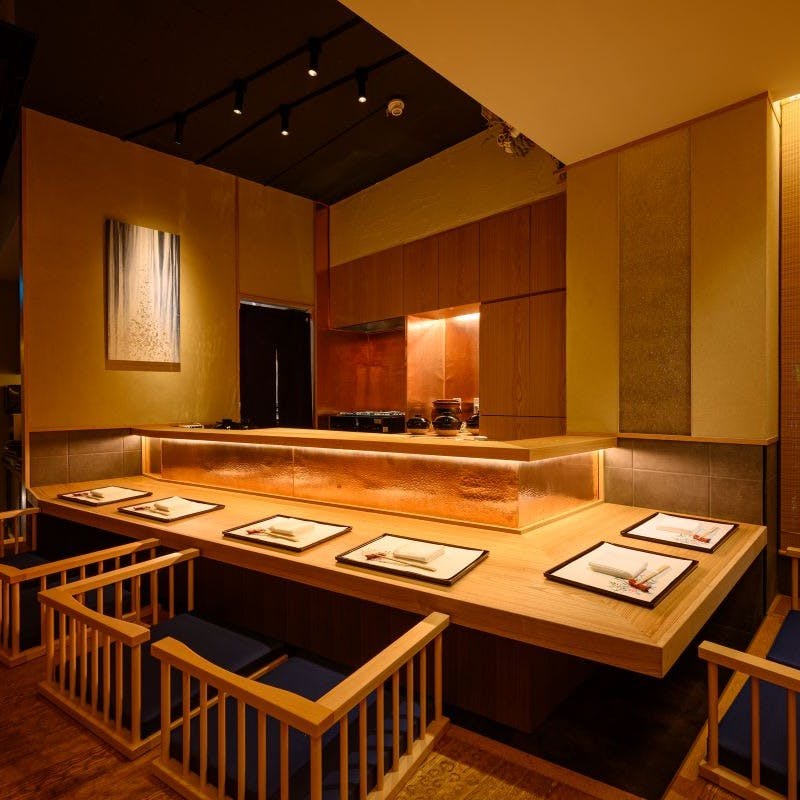 落ち着いた和の空間は、幅広いゲスト層に対応。カウンター席では親睦を深めるシーンに。完全個室ではご接待会食のほか、お顔合わせや御結納などにもご利用いただけます。ホッと一息安堵(あんど)の時間をお過ごしください。