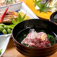 落ち着いた雰囲気の店内では、豊かな季節彩あふれる美肴でお客様をおもてなしいたします。大将が手をかけた四季折々の料理で旬を感じていただきながらお召し上がりください。和食の良さである季節により変わる献立はいつ来てもお愉しみいただけます。産地直送の鮮魚をしっかり仕込んだお刺身や、旬の食材を使った季節の天麩羅など、大将がその食材を活かした調理法と共に、お食事をより豊かにしてくれるお酒を豊富に取り揃えております。風情のある割烹料理と空間で至福のひと時をお過ごしください。