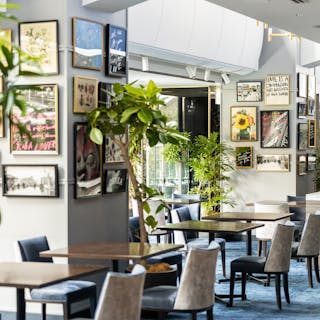 店内やテラスには、オリーブの木を中心にさまざまなグリーンを配置し、都会の中にある隠れ家的なオアシスを演出。 モノクログラフィックアートは、大阪・ミナミの「時間」をテーマに、明治、大正時代の心斎橋周辺の様子が分かる貴重な写真から“ミナミの過去”を、今の大阪を代表するシンボルなど“ミナミの現在”を切り取り「過去から未来への繋がり(クロス)」を表現しています。 ひとつひとつの食材にこだわった、カジュアルでありながら本格的なお料理をお楽しみください。