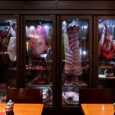 ジビエ料理に特化した中目黒のトロワピエロが、【ラ・ブーシェリー・デュ・ブッパ】と名前を改めてオープンしました。内装のコンセプトは「フランスの肉屋が営むブラッセリー」です。来店されたお客様が一番に目に留まるのは、メインフロア一面を占める肉の熟成庫です。綺麗に陳列されている、ドライエイジング中の様々な種類のお肉は圧巻の一言です。熟成肉の旨さを追求したラ・ブーシェリー・デュ・ブッパで、美味しいジビエ料理と最高のワインを心ゆくまでお愉しみください。