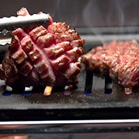 非日常感を感じられる上質な雰囲気の店内で、厳選したお肉を使用した焼肉をご堪能いただけます。屠畜場から直接仕入れる黒毛和牛は格別でございます。オーナー肝入りの『タン』は、ジューシーな生塩タンをはじめ、1週間、2週間、1ヶ月と専用庫の中で熟成させ、旨味を凝縮させたタンを厚切り、薄切り、スパイシーな味付けなど、様々な食べ方でお愉しみいただけます。また、フレッシュな赤身肉から野性味溢れる香りの熟成赤身肉も豊富にご用意しております。こだわりのお肉と共に贅沢なひと時をお過ごしください。