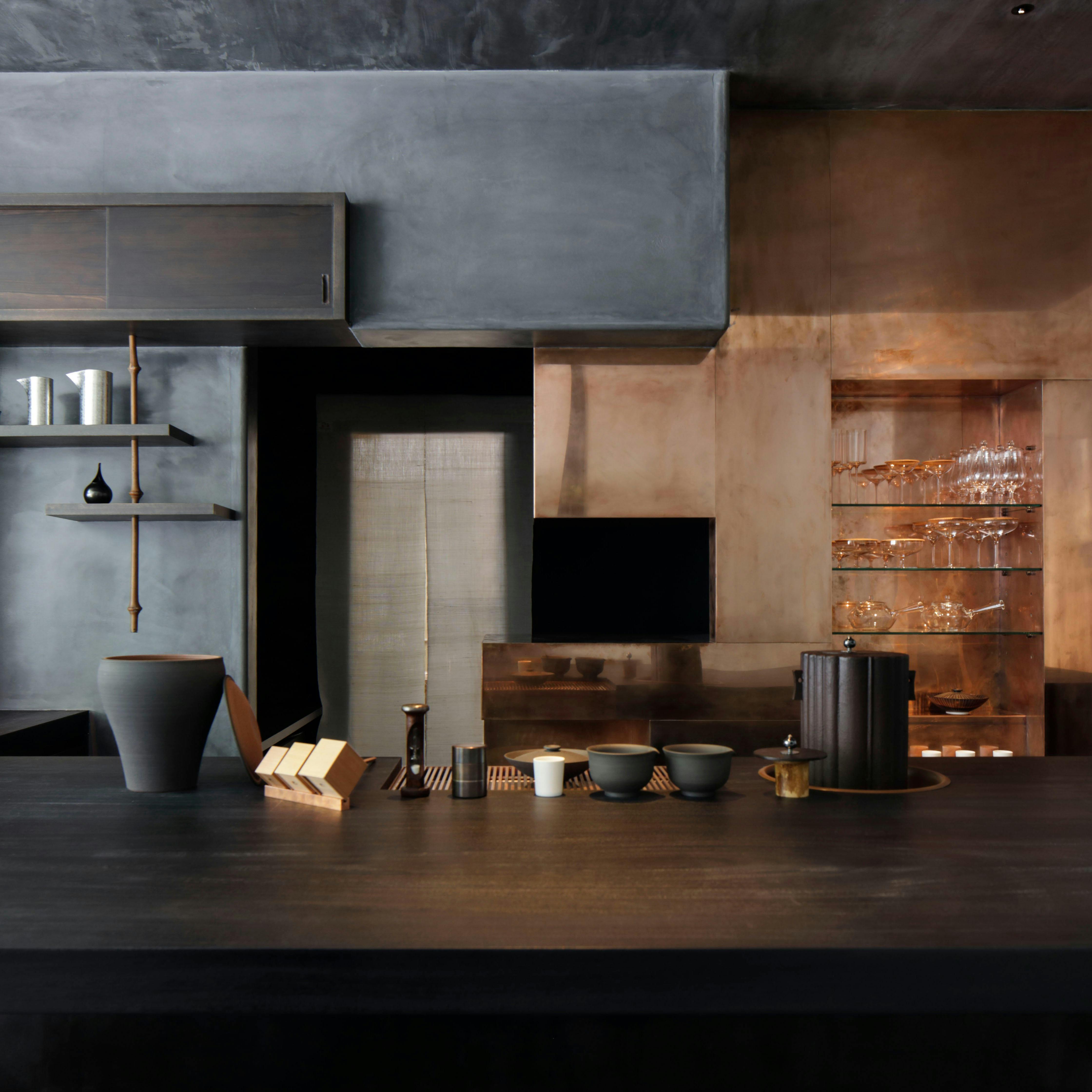 カウンター8席の茶房は、対面式だからこそ生まれる心地よい緊張と安らぎのある空間。茶や菓子を供するだけでなく、その所作も含めて五感でお愉しみいただける体験の場となっております。