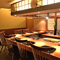 大切な方と肩を並べて語り合える、落ち着いたカウンター席。木の温もりを感じる、清潔感のある空間です。また周りを気にせずくつろげるテーブル席もご用意しております。自宅にいるようなプライベート空間でゆったりとおくつろぎください。