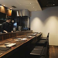 カウンター席が並ぶこじんまりとした店内は、大人の隠れ家のような上品で落ち着いた空間でございます。厳格な規定をクリアしたA4ランク以上の神戸牛を、贅沢なコースでお愉しみいただけます。昔ながらの製法で作った秘伝のタレは和歌山の三ツ星醤油を使用しており、コクがあってお肉の美味しさをより一層引き立ててくれます。オーナーソムリエが厳選した日本酒やワインとともに、上質な神戸牛をご堪能ください。