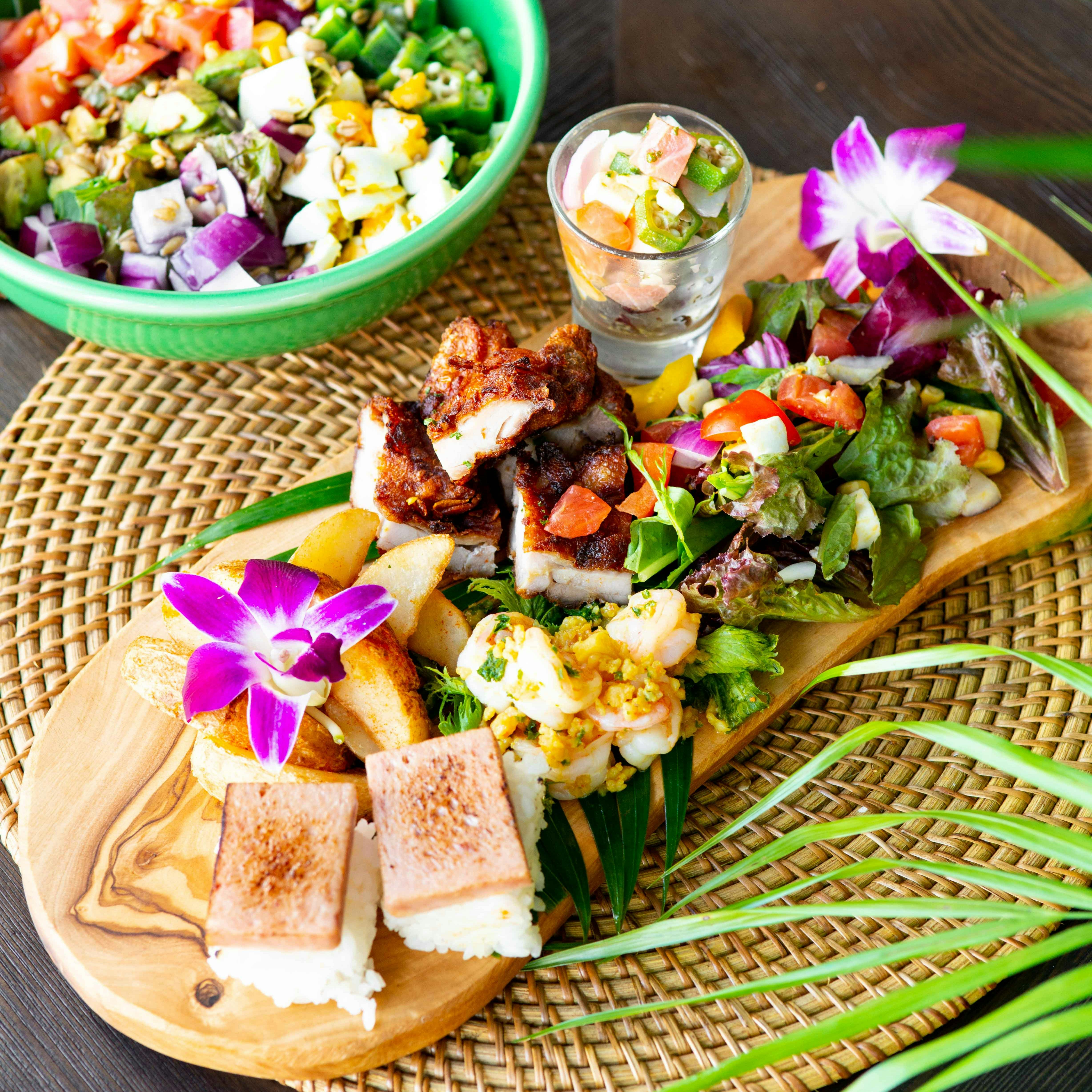 オリジナルハワイアン料理にトロピカルドリンクで乾杯