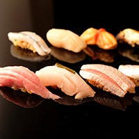 高級店が連なる銀座にて、目利きの職人たちが厳選したこだわりの新鮮食材を使用し、丁寧に仕事をしていく。ゲストに鮨を存分に味わい喜んでほしいという想いから、コースは江戸前の握りで勝負。長年鍛えられた眼と経験で、鮨の素材の新鮮さや美味しさを吟味。舌だけでなく、五感を満足させる料理がここにあります。